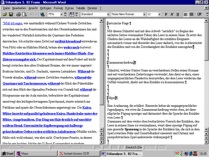 Auf diese Weise erlaubt es die fertige Frame-Seite, das im Text erfasste Stilmittel anzuklicken, um dann gleichzeitig auf der rechten Seite den Kommentar dazu lesen zu können.