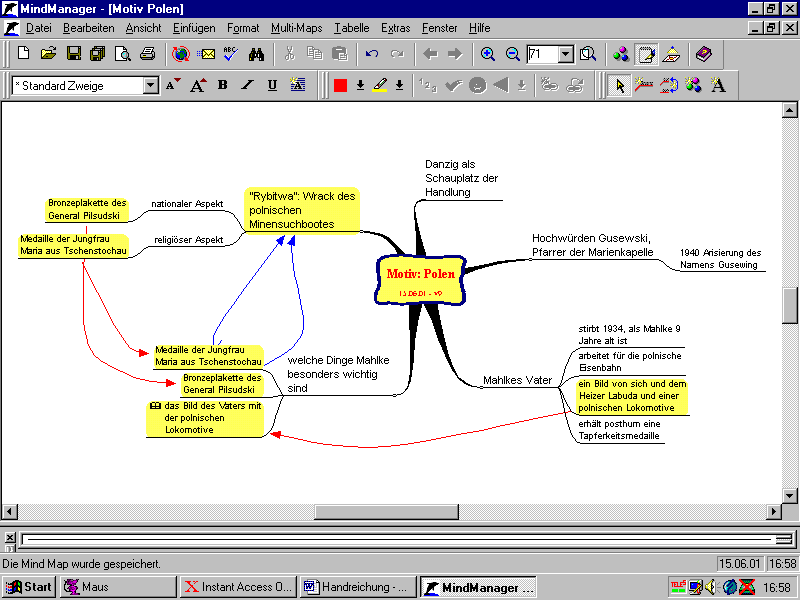 Das folgende Beispiel soll lediglich an die Oberfläche und Funktion des MindManagers erinnern. Dargestellt wird das Motiv "Polen" in Katz und Maus.