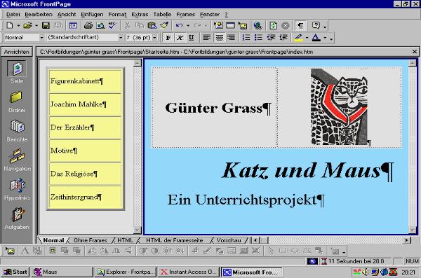 Das Erstellen von Frame-Seiten geht mit vielen Programmen sehr einfach: So lassen sich mit Word 2000 Frame-Seiten automatisch rstellen, ebenso mit dem Programm Frontpage, mit dem das vorliegende Beispiel erstellt wurde: